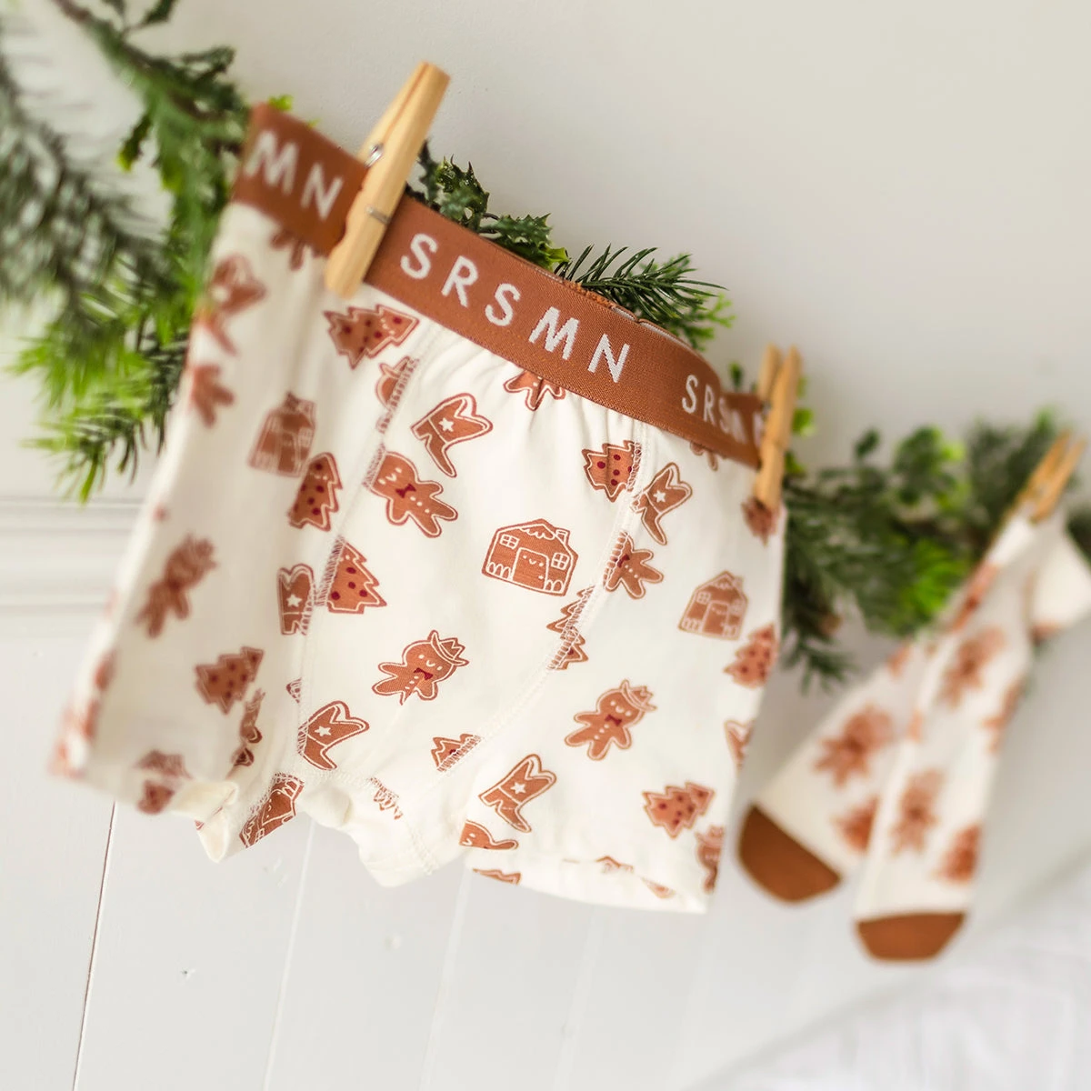 Boxer Crème à Motifs Pain D’épices, Enfant