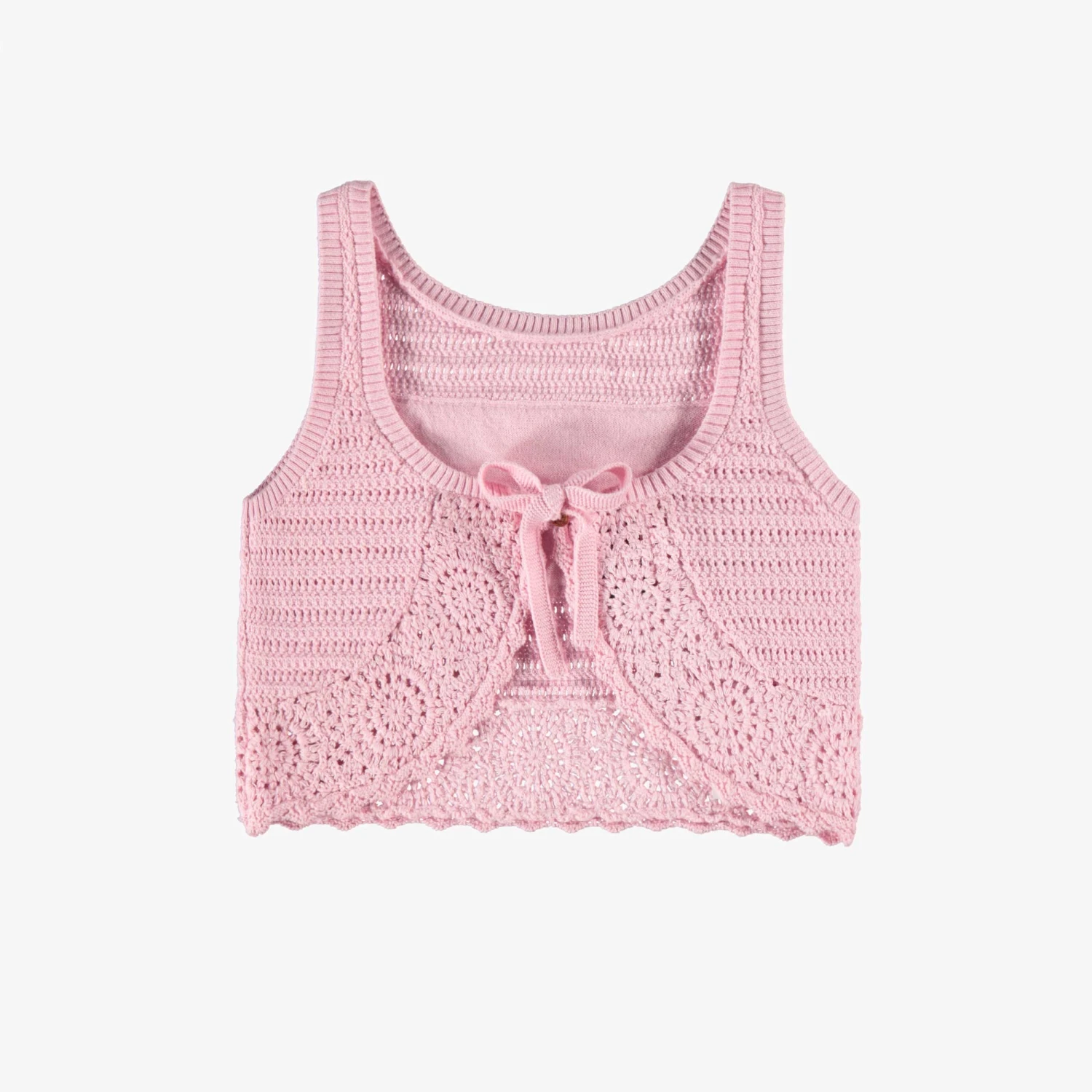 Camisole Rose Pâle En Maille Crochetée, Enfant