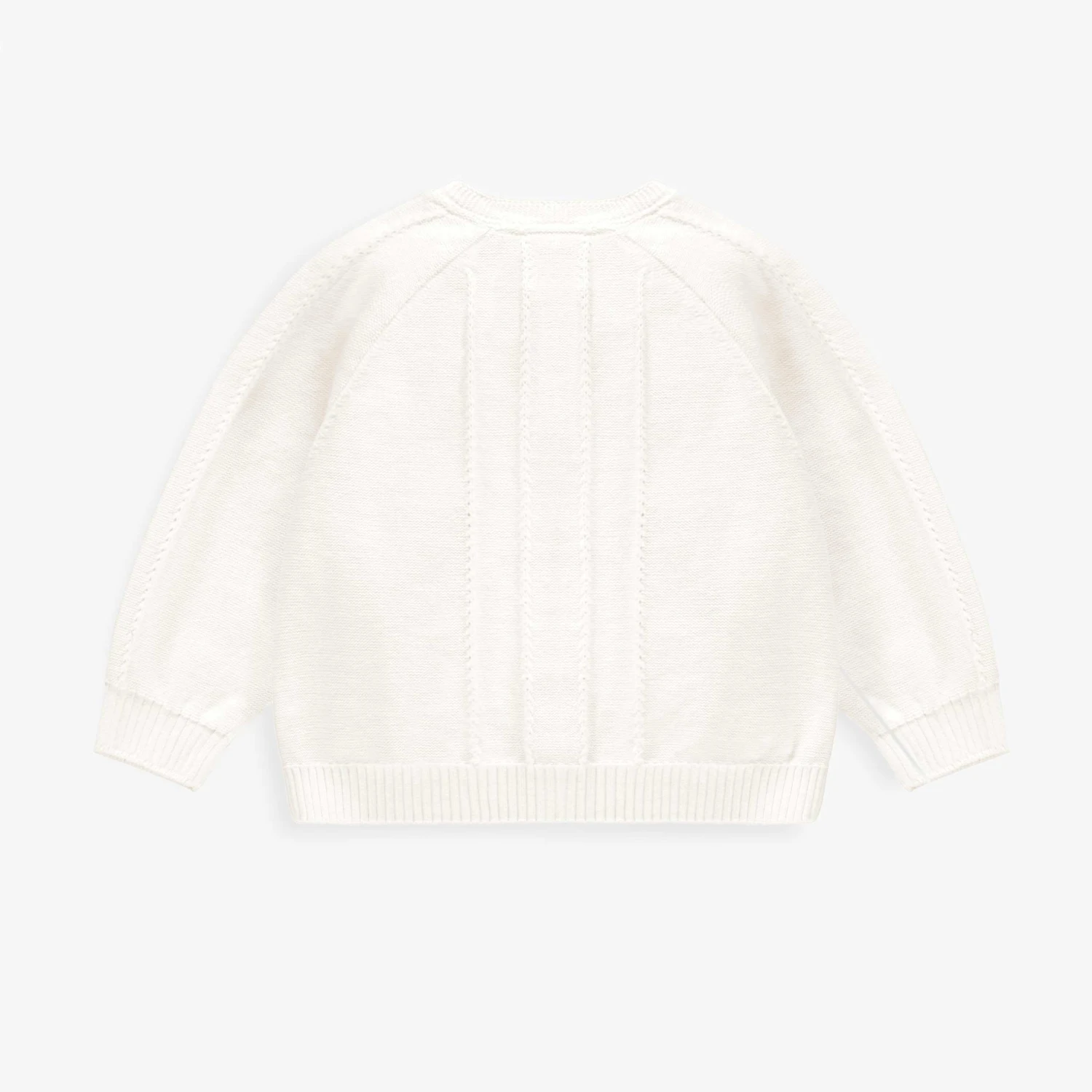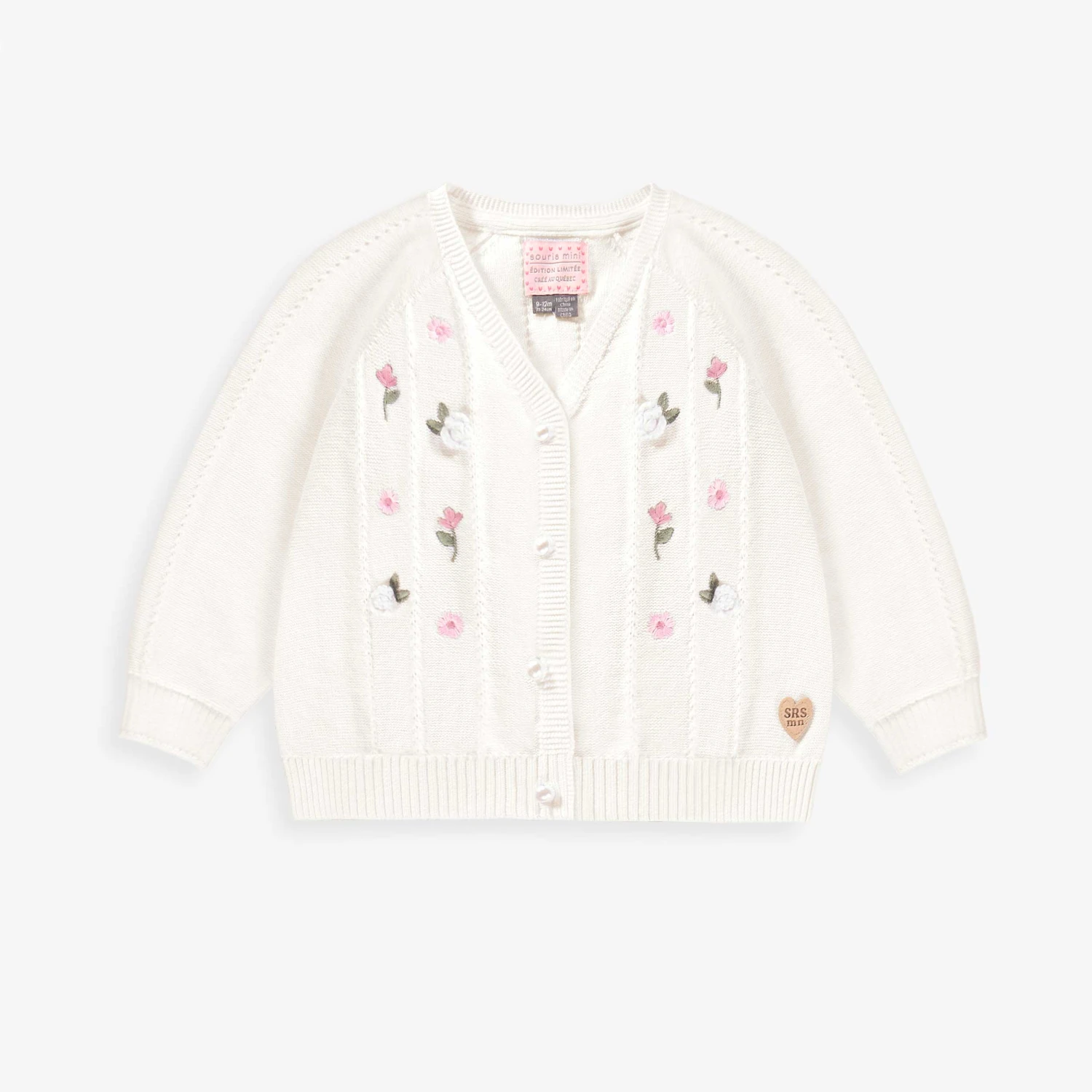 Cardigan Blanc En Tricot Avec Détails Ajourés Et Fleurs Crochetées, Bébé