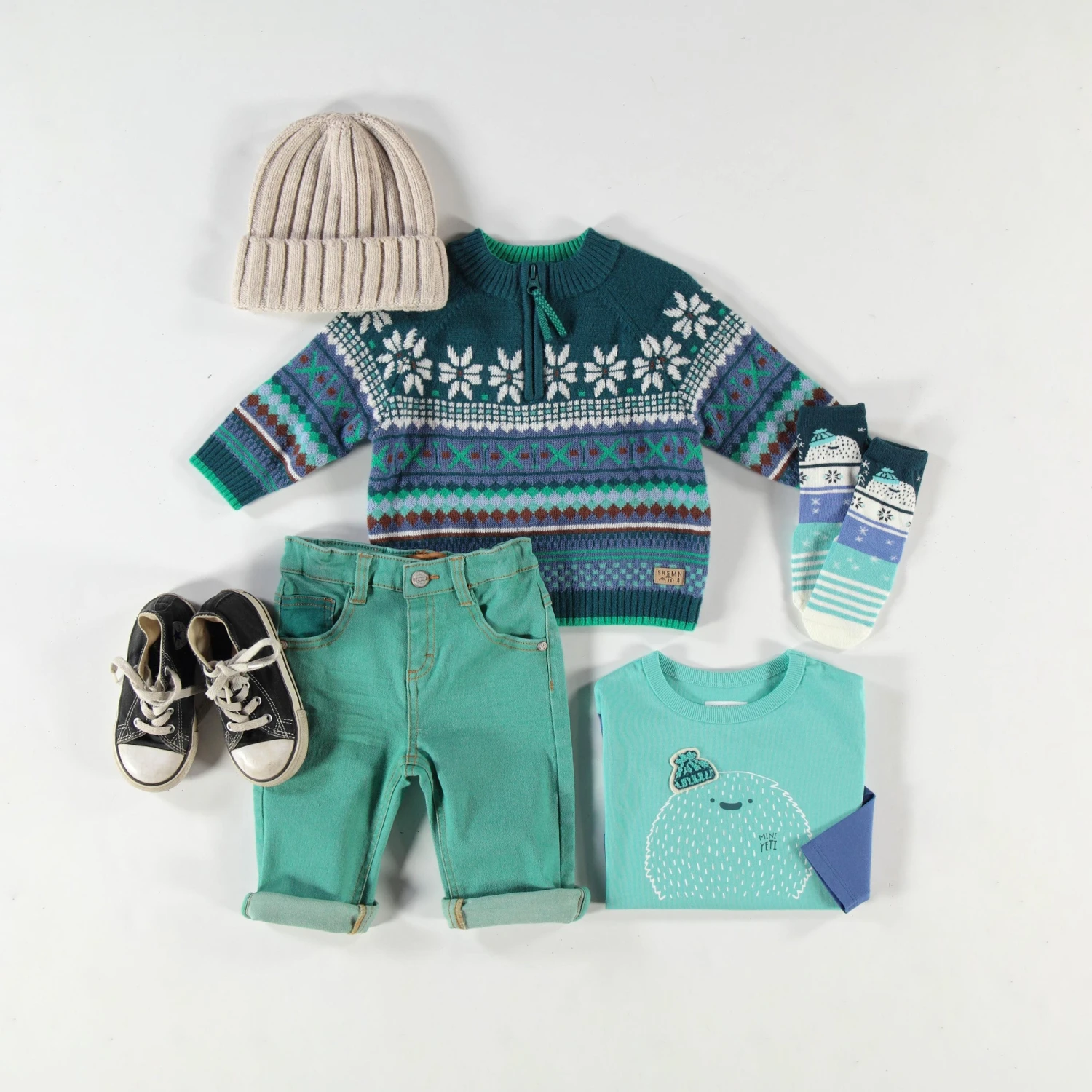 Chandail Bleu Sarcelle En Tricot Avec Motifs, Bébé