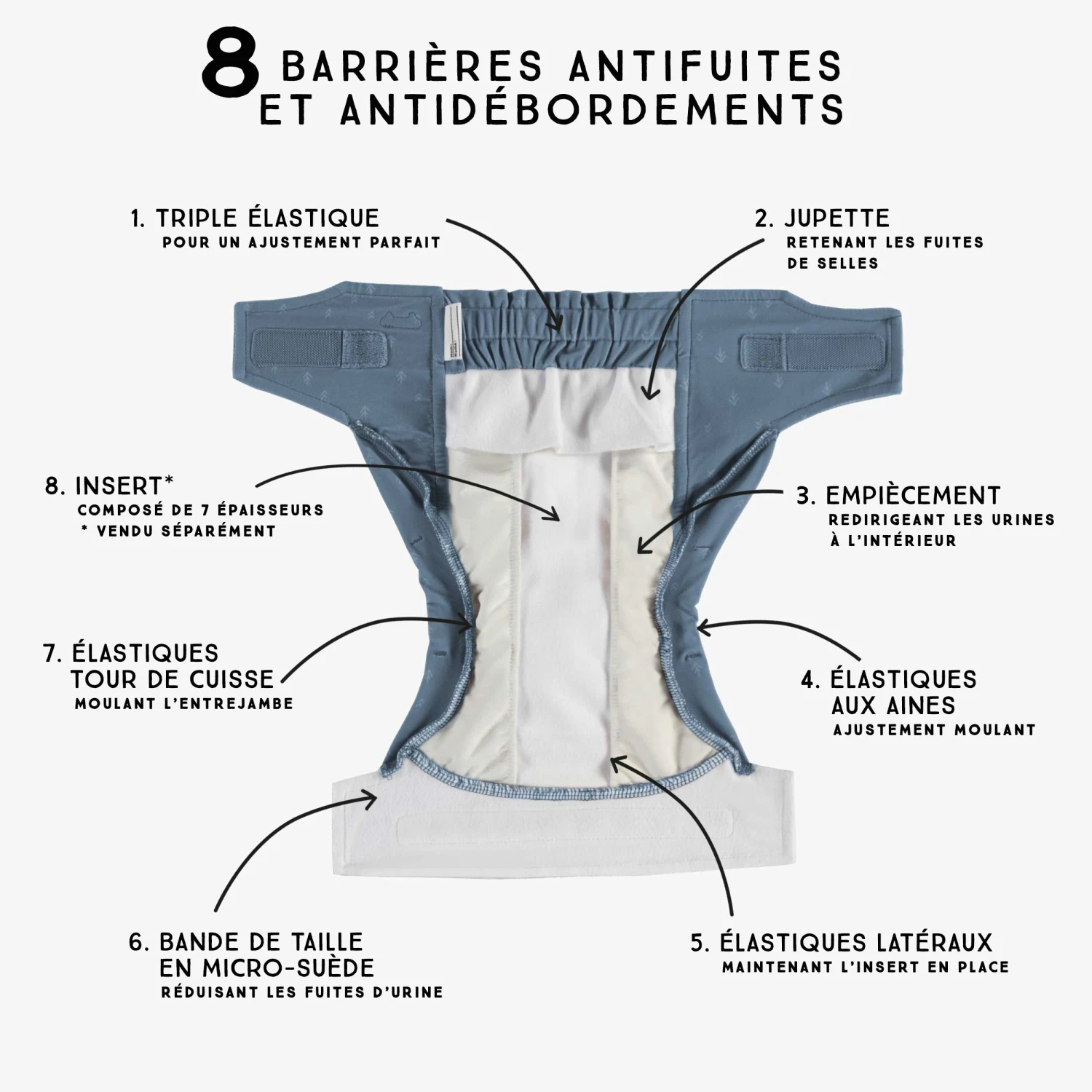 Couche Réutilisable Ultramince Bleu à Motif De Flèches, Bébé