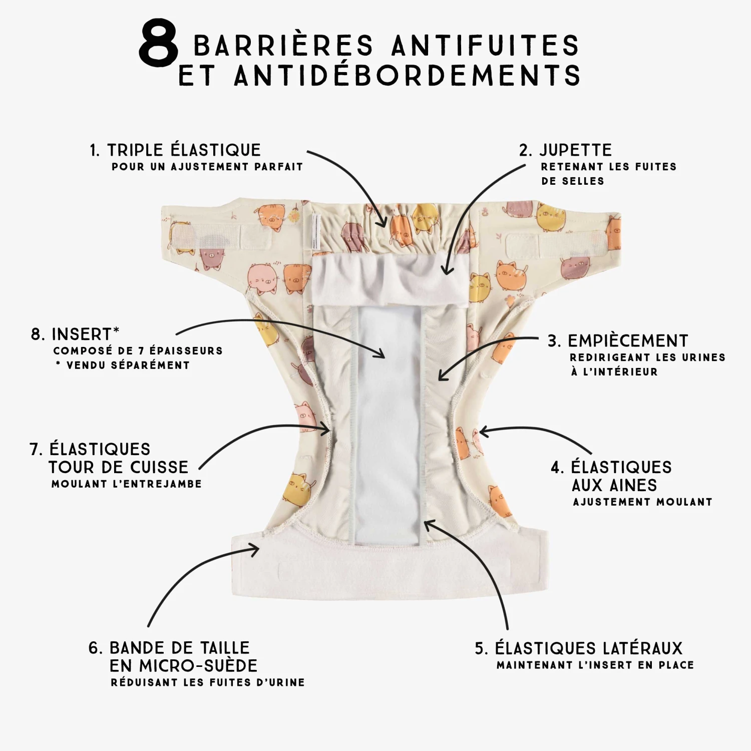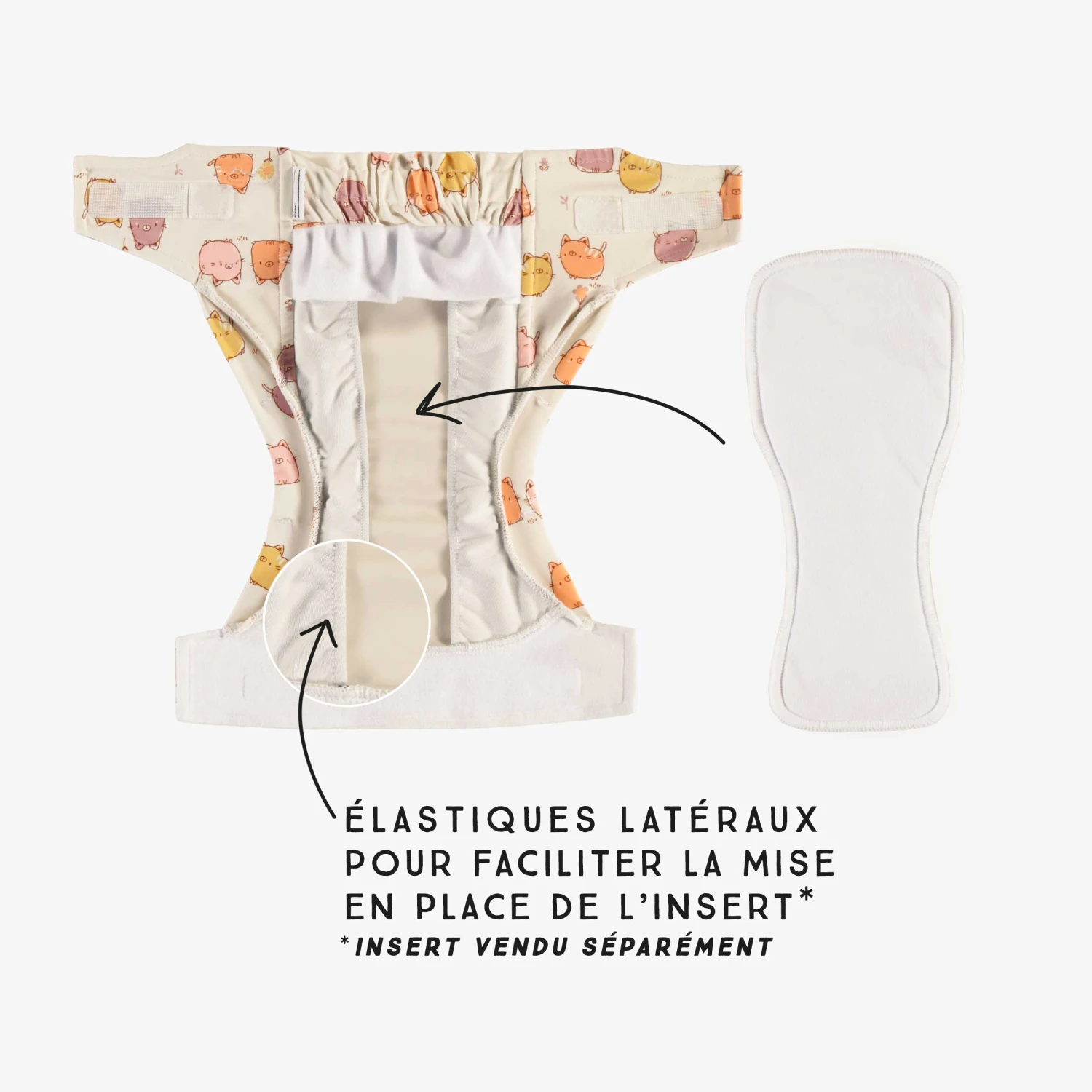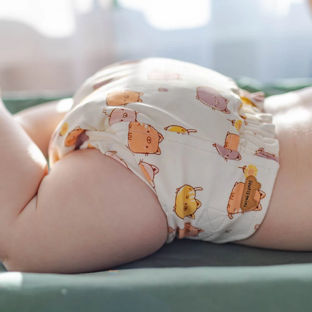 Couche Réutilisable Ultramince Crème à Motif De Chats, Bébé
