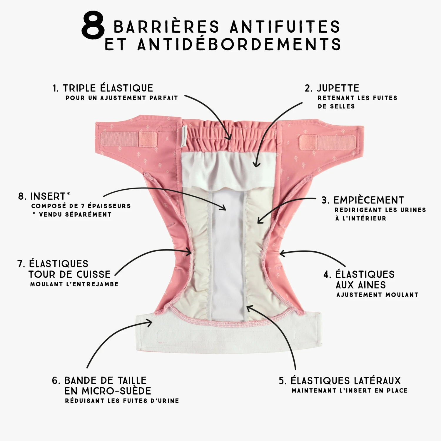 Couche Réutilisable Ultramince Rose à Motif De Flèches, Bébé