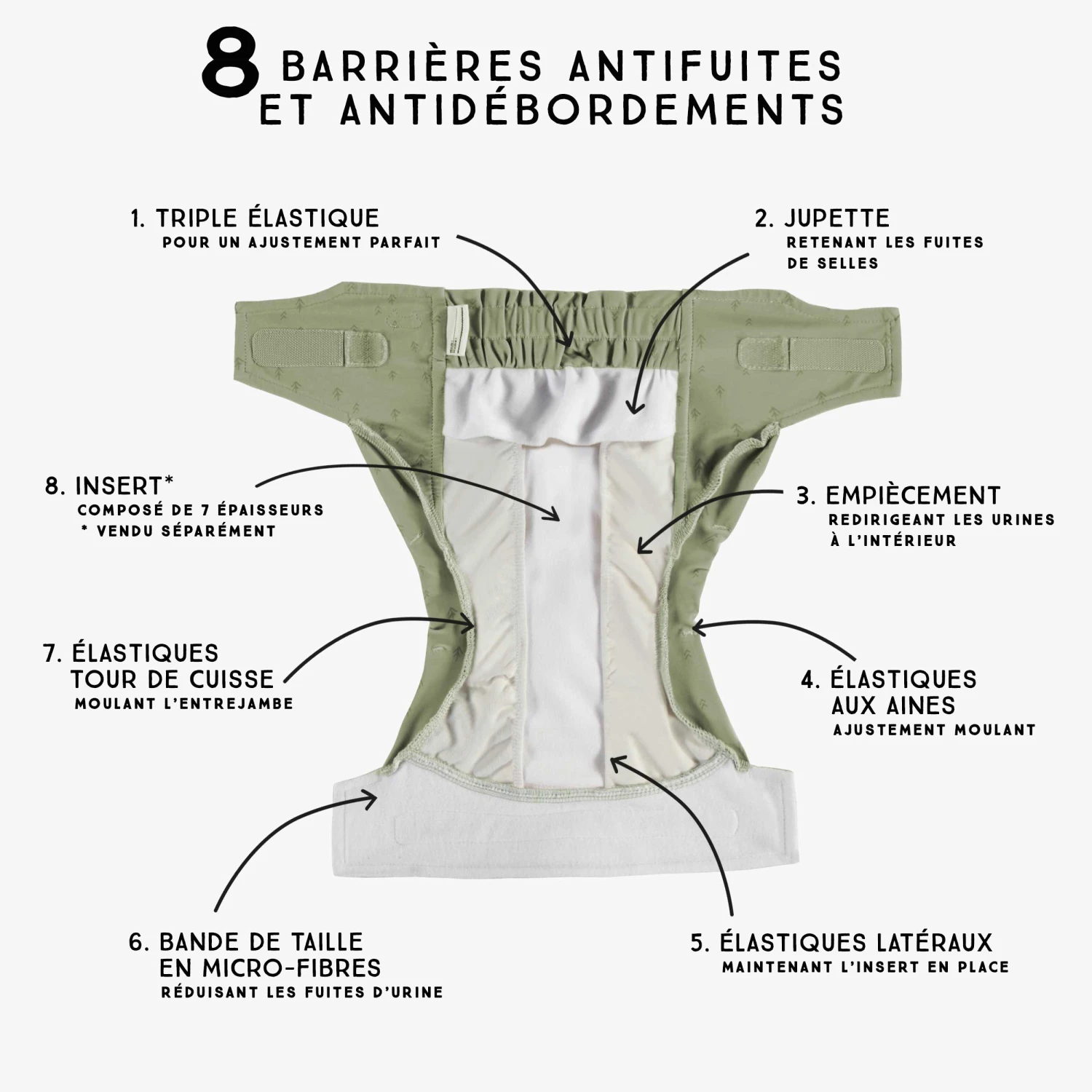 Couche Réutilisable Ultramince Vert Sauge à Motif De Flèches, Bébé