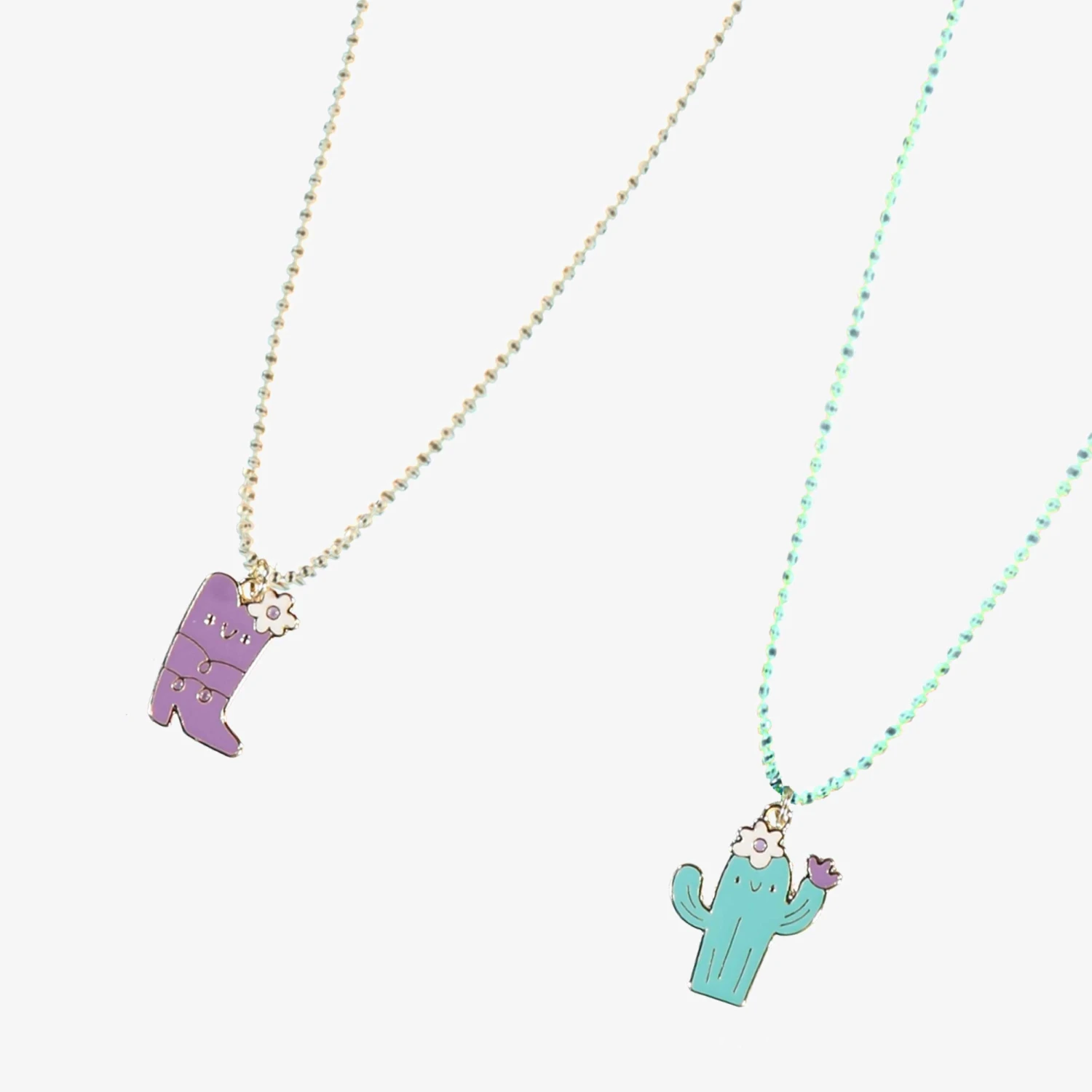 Duo De Colliers Cactus Et Botte De Cowboy, Enfant