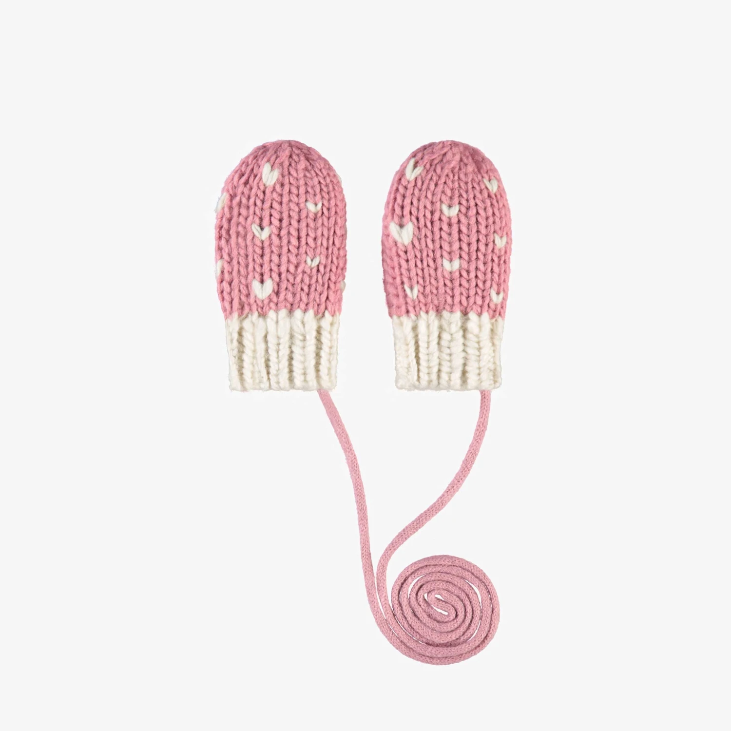 Mitaines Rose Et Crème En Tricot Avec Cœurs, Bébé