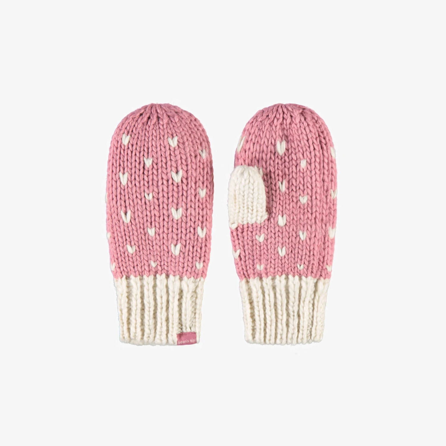 Mitaines Rose Et Crème En Tricot Avec Cœurs, Enfant