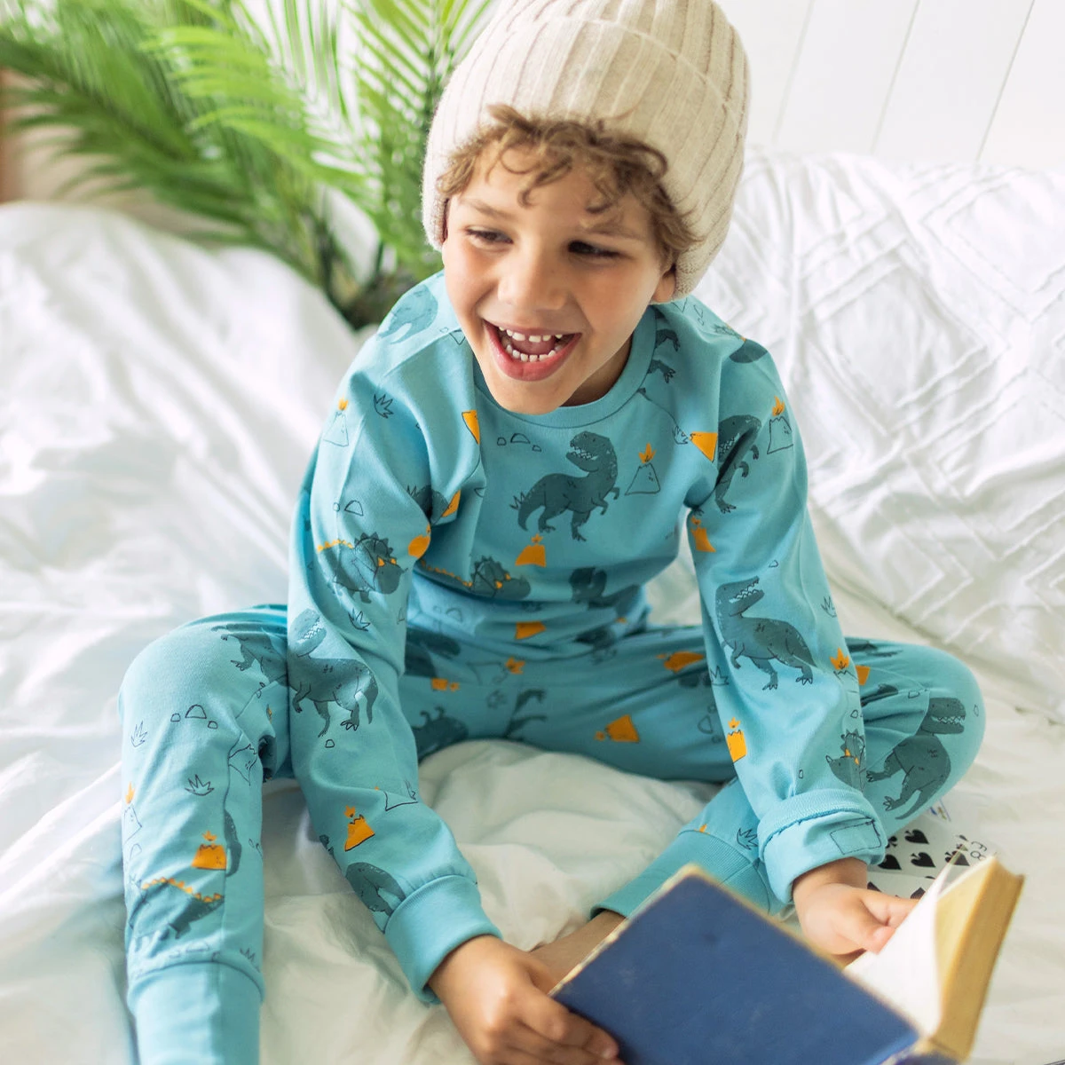 Pyjama Deux Pièces Turquoise à Motifs De Dinosaures, Enfant