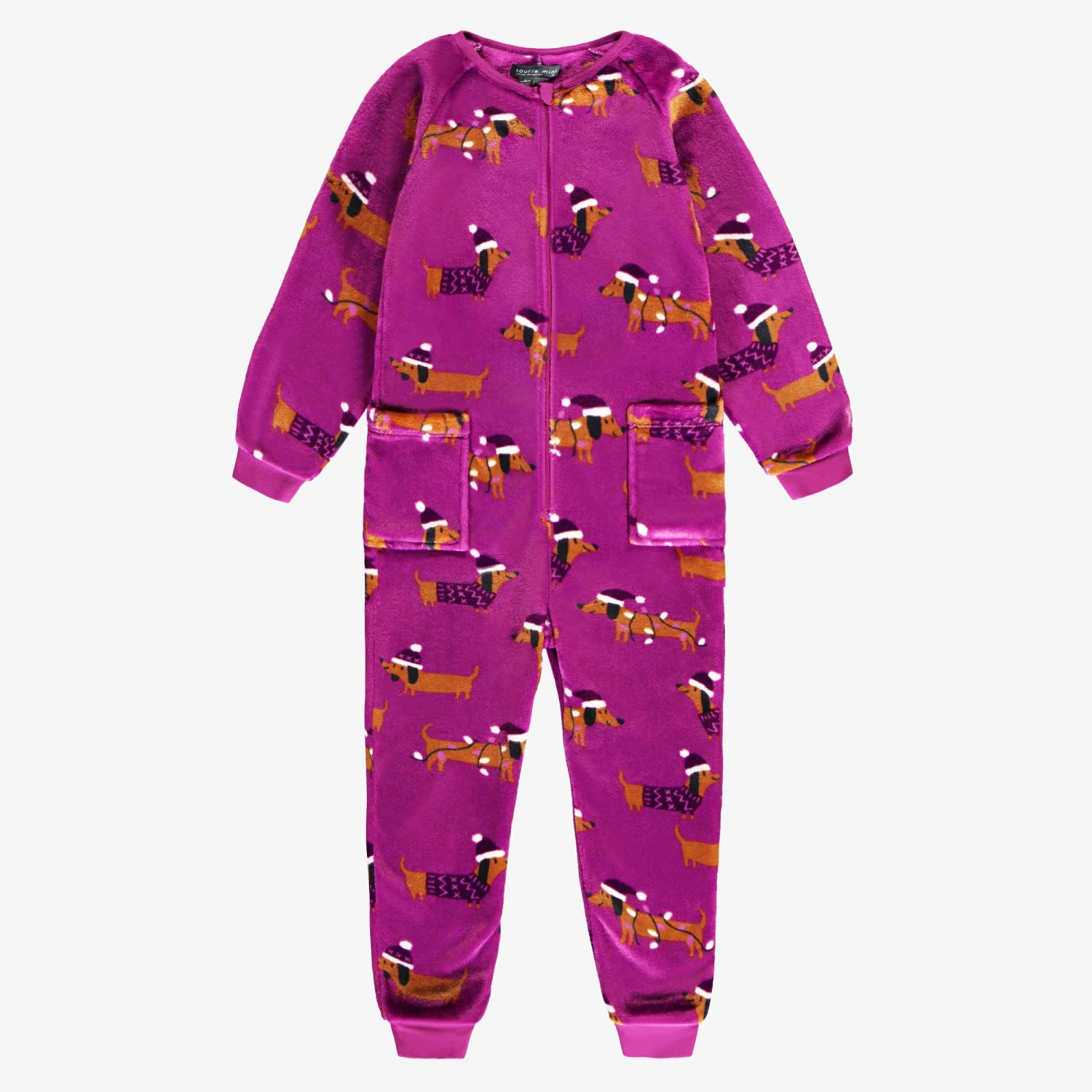 Pyjama Une Pièce En Peluche Mauve à Motifs De Chiens, Enfant
