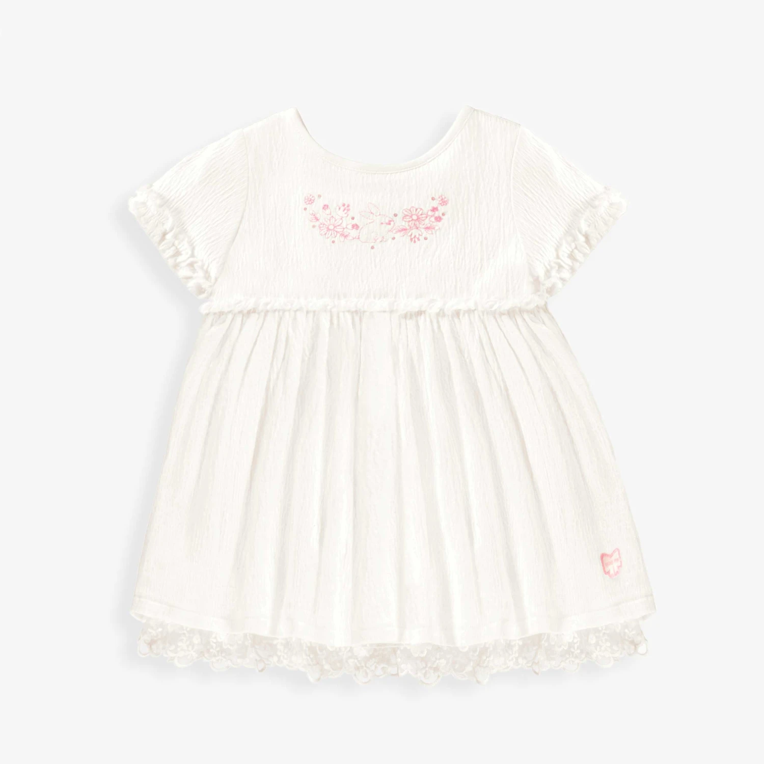 Robe Blanche En Jersey Crêpé Avec Broderies De Fleurs, Bébé