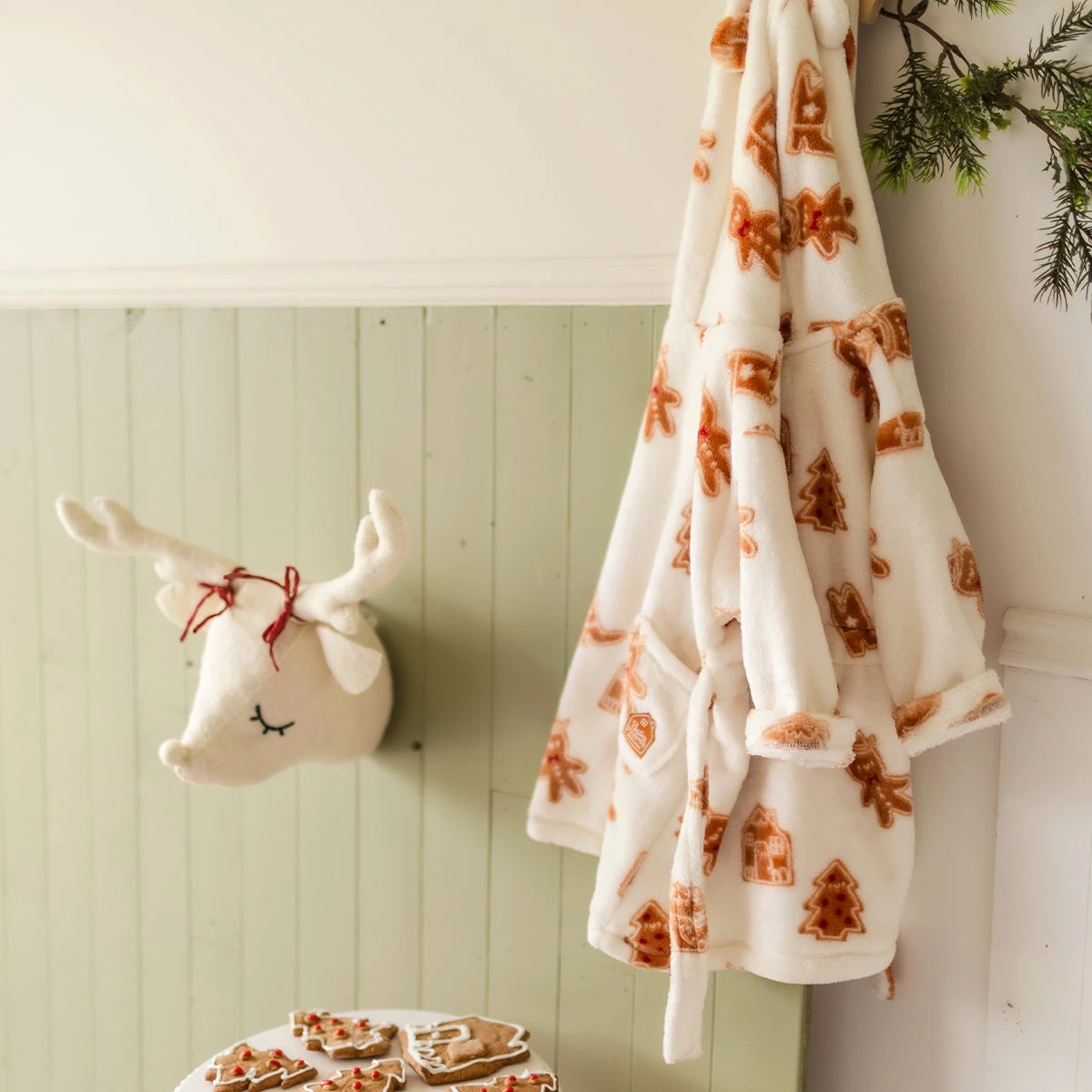 Robe De Chambre Crème En Peluche à Motifs Pain D’épices, Bébé