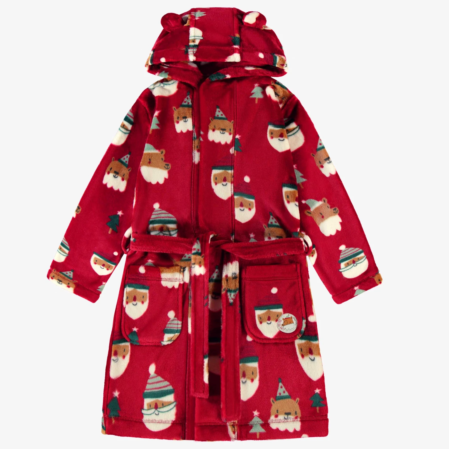 Robe De Chambre Rouge En Peluche Avec Motifs Des Fêtes, Enfant