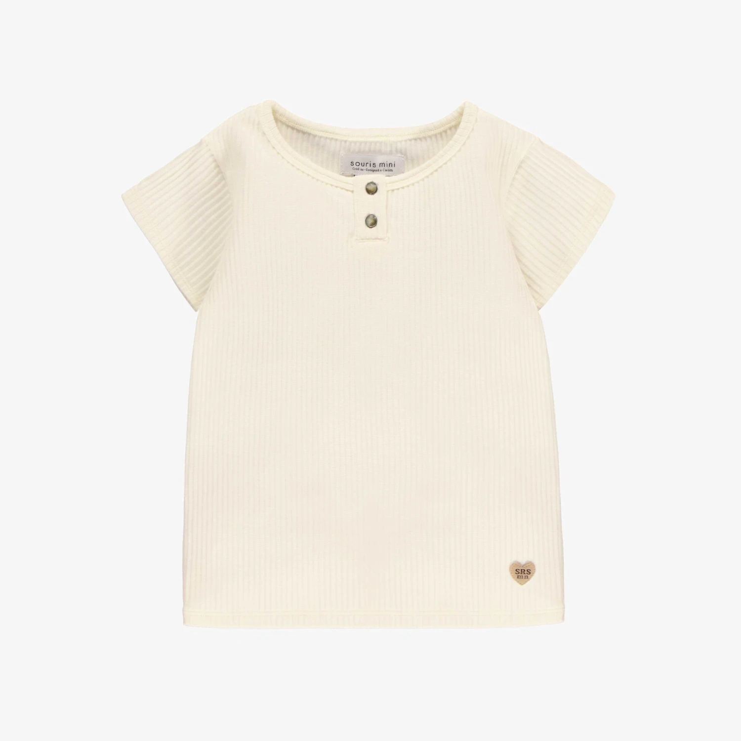 T-shirt Crème En Tricot Côtelé Irrégulier, Enfant