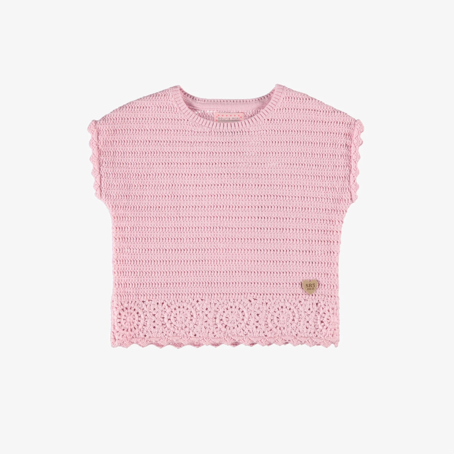 T-shirt Rose En Tricot à Détails Ajourés De Fleurs, Bébé
