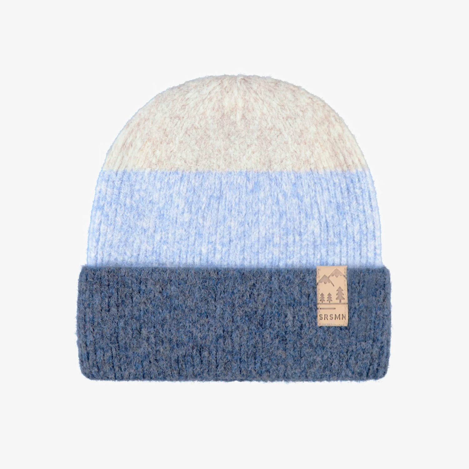 Tuque Crème Et Bleu En Tricot Avec Rayures, Enfant