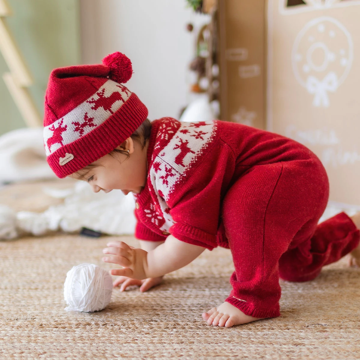 Une Pièce Rouge En Tricot Avec Motifs Jacquard, Naissance
