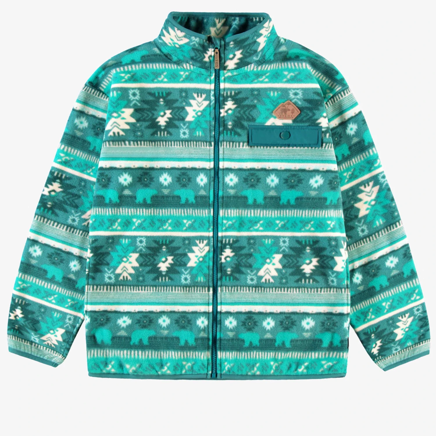 Veste Turquoise En Polar Avec Motifs, Adulte
